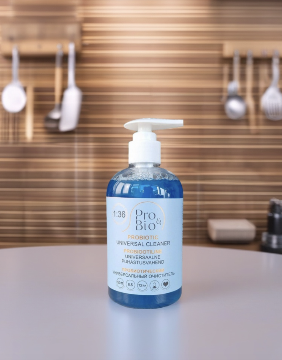 Pro&Bio probiootiline universaalne puhastus- ja pesuvahend on tõhus, tugevatoimeline, kasulike probiootiliste kultuuridega kontsentreeritud puhastusvahend kõigi pestavate pindade igapäevahoolduseks (nt mööbel, seinad, põrandad, autosalong jne).
